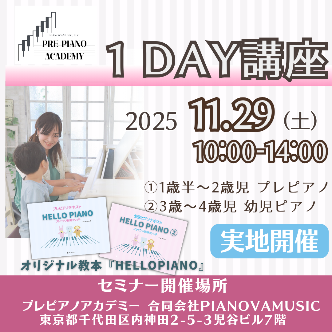 2025/11/29(土) ①プレピアノ10.00-11:30 ②幼児ピアノ12:30-14:00 |